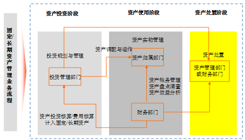 如財(cái)務(wù)管理中的資產(chǎn)管理職能,可以圍繞資產(chǎn)投資階段、資產(chǎn)使用階段、資產(chǎn)處置階段來(lái)分析相關(guān)的財(cái)務(wù)管理職能。如下圖所示: