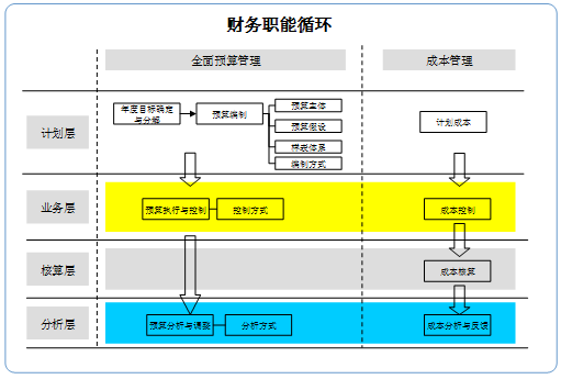 再如,預(yù)算管理職能,從職能內(nèi)容來(lái)劃分,其職能塊要項(xiàng)是:資本預(yù)算、經(jīng)營(yíng)預(yù)算和財(cái)